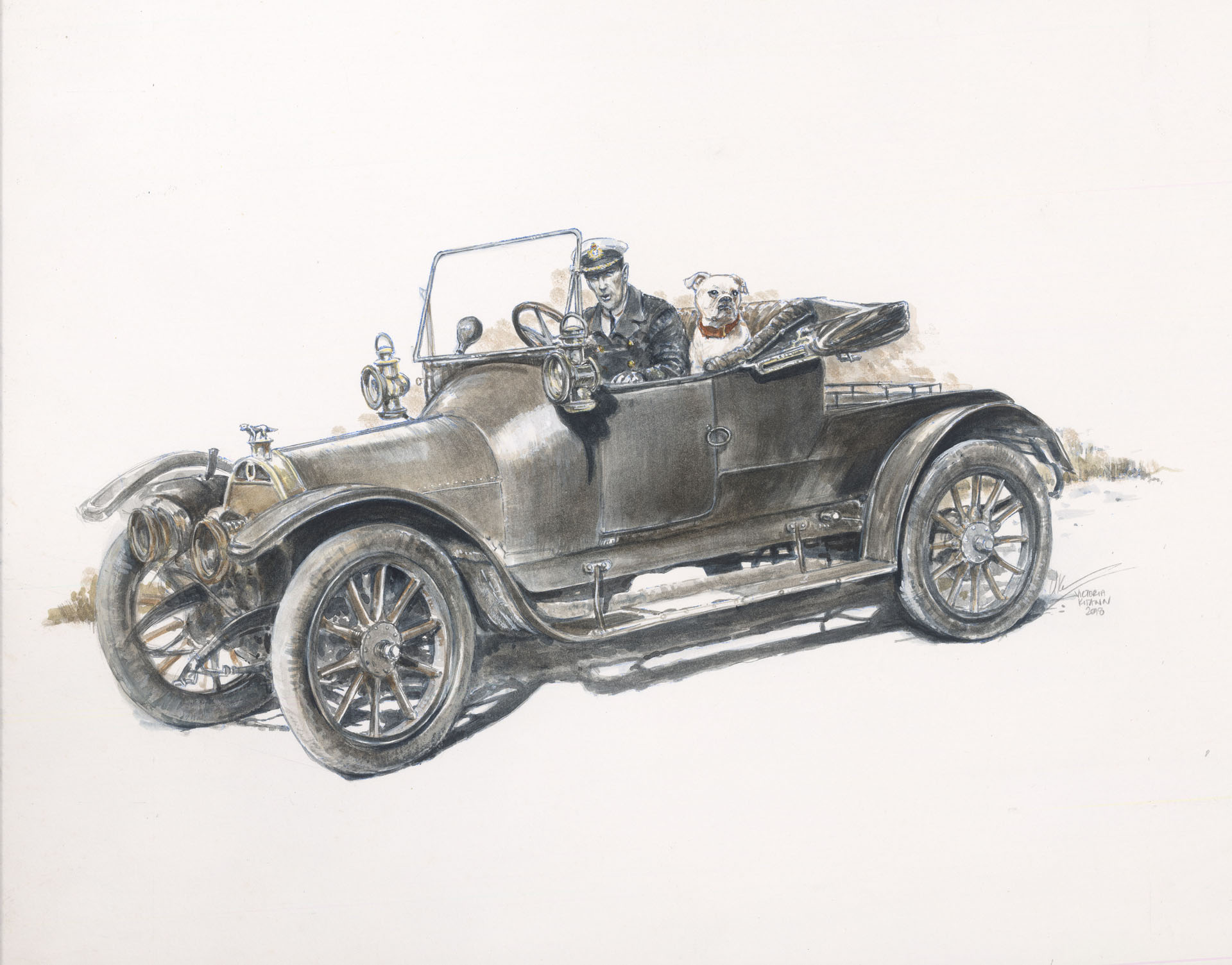 Commander Grant, R.N. and ‘Bill Grant’ (2IC) in an Open Tourer, R.A.N.C., 1913 ©2018 (Tonal wash, 20 x 29 cm.) $450.00