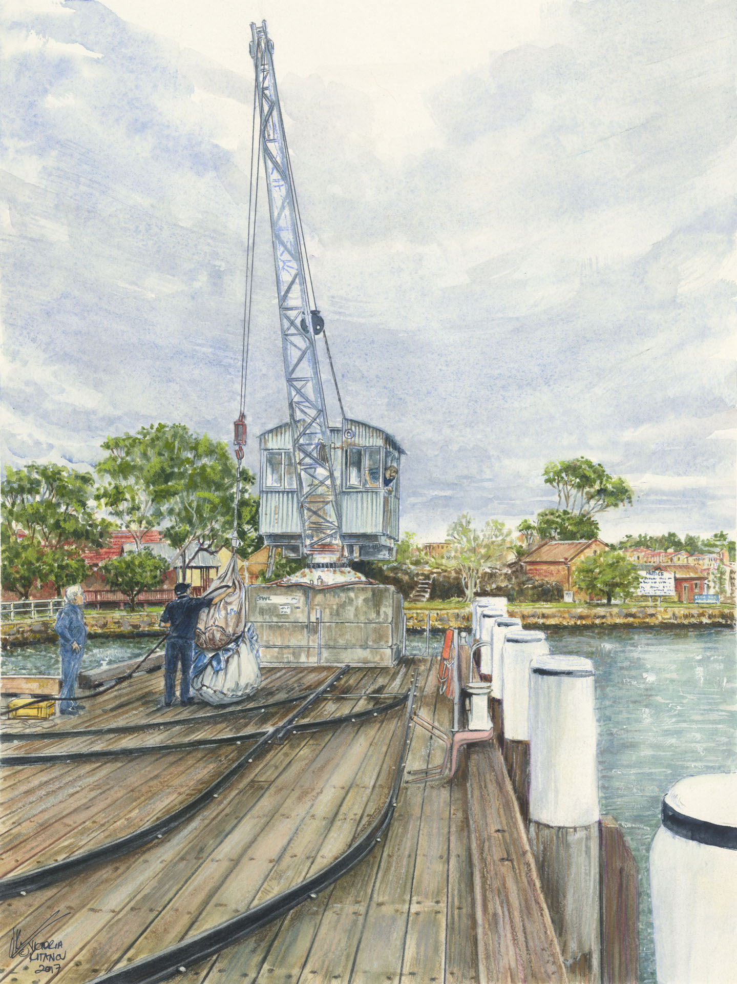 Load testing, Broadbent Crane, Spectacle Island, Sydney ©2017 (Watercolour, 29 x 39 cm.)$2,500.00